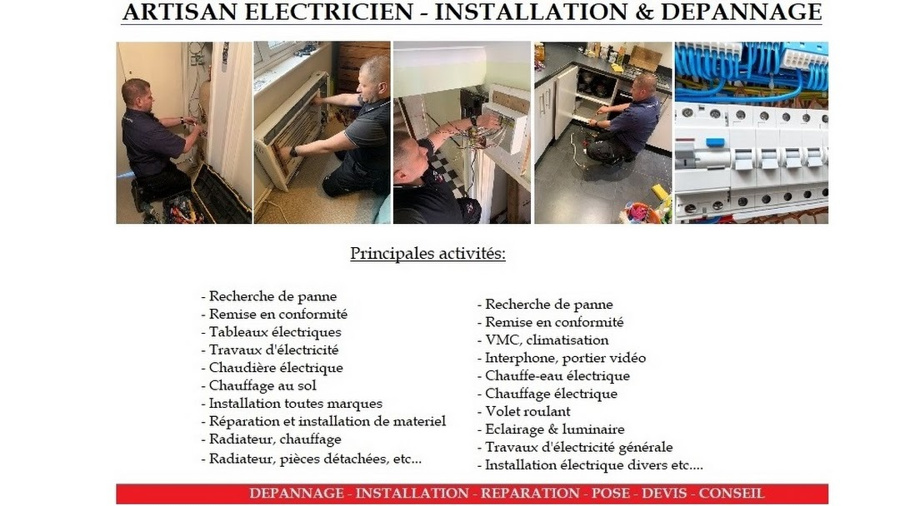 - Installation et remplacement de dispositifs électriques : disjoncteur, différentiel, etc.